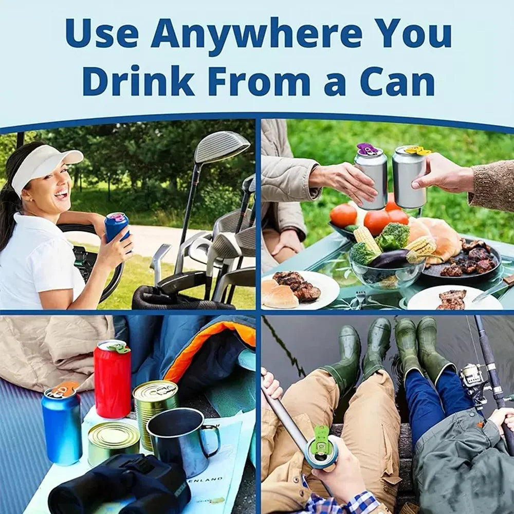 The Soda Can Lid Opener is a must-have tool for anyone tired of struggling with hard-to-open soda or beer cans. Designed with an upgraded snap-on mechanism, it seals tightly and works with all standard 6oz, 8oz, 12oz, and 16oz aluminum cans, including slim cans. With half the force needed to open pull tabs, it protects your fingers and nails, making it ideal for kids, adults, and parties. These lids also function as colorful drink markers, available in six vibrant colors (blue, orange, yellow, green, pink, and purple), so you’ll always know which can is yours during gatherings. Plus, the tight seal keeps out bugs, sand, and debris, ensuring every sip stays clean and fresh. Perfect for BBQs, camping, picnics, or home use, this practical and reusable can opener combines convenience, hygiene, and style.